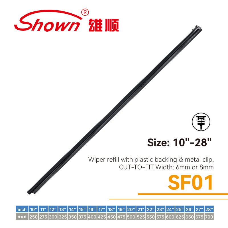 Recharge d'essuie-glace avec support en plastique et clip en métal, à découper sur mesure, largeur 6 mm ou 8 mm.